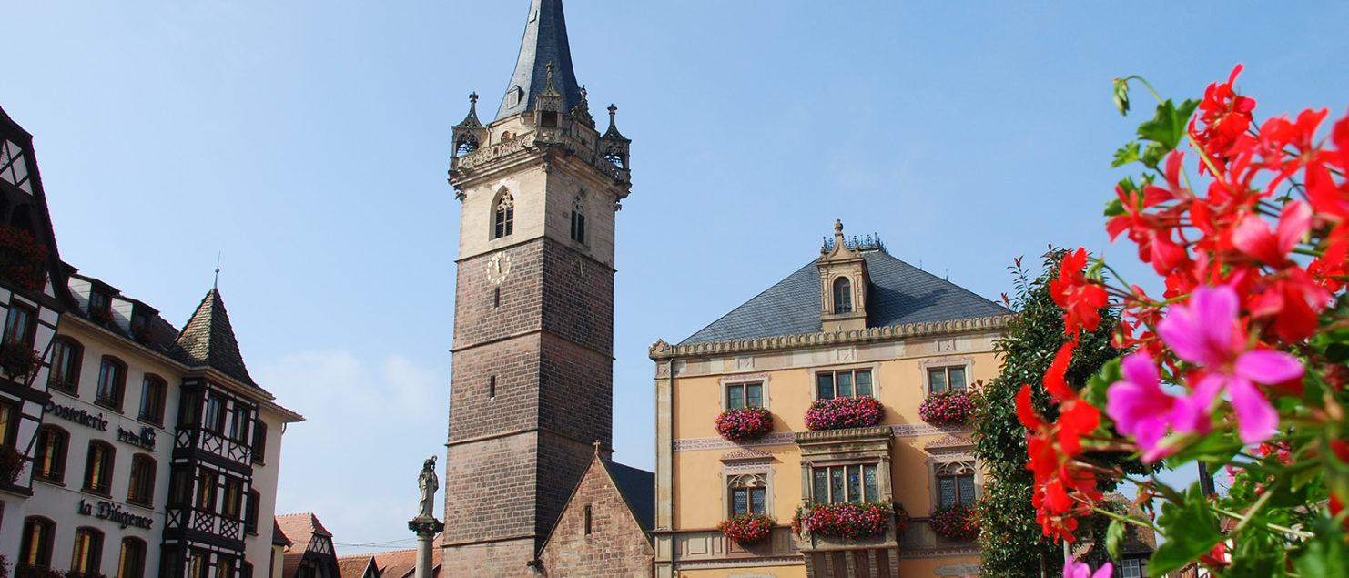 Obernai est une cité fortifiée entourée de ses anciens remparts. Une prédominance de maisons à colombages aux couleurs chatoyantes donne tout son charme au cœur de ville. L’hôtel de ville, le puits à six sceaux ou encore la fontaine Sainte-Odile sur la célèbre place du Marché en sont autant de joyaux. Une particularité dont Obernai est fière et qui la distingue, c’est son Beffroi, haut de 60 m. Il est unique en Alsace.